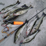 Рыбалка опять оказалась трудовая, "раздач" не было - рыбу приходилось вымучивать по одной то тут, то там на протяжении целого дня. В результате у меня 5 шт (один около 2 кг), у напарника 4. Плюс куча отпущенной мелочи.