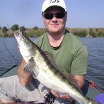 Карпы и толстолобы прыгали весь день, а вот активности хищника не было. Прошлись по проверенным точкам - только на некоторых были одиночные поклёвки мелких судачков. В процессе перемещения от точки на точку периодически проверяли новые места. На одном из таких, уже почти в обед (около 11-30) влетел единственный зачётный судачок, потянул на 2,4 кг, ударил на 4-дюймовый виброхвост Daiwa TN D-Fin перламутрового цвета. Днём от бесклёвья пробовали половить окуня - но даже он не отзывался. Вечером задержались в надежде на вечерний "выход", но было лишь несколько одиночных мелких судачков 300-500 г(всего за день поймал и отпустил штук 8, и у товарища чуть меньше). Короче, не густо, даже мелочь не клевала нормально.