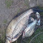 Я зловив 3 підлящика : 300г, 600г, 800г та декілька плотиць. Товариш взяв гарного ляща, який заважив 1кг 700г(на фото). Ловили на відстані майже 20м, повідки використовували діаметром 0.11 та довжиною 50 - 60 см, наживка - опариш. Багато рибаків ловили на спутніки, але великих екземплярів в них не було (маленькі підлящики 200 - 300 г та карасики).
