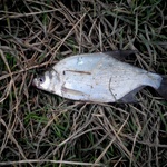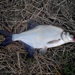 Плотвичка на березі, але чомусь без ока (((, причому втратила вона його давненько.