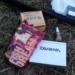 Старотовий закорм. З останніх двох рибалок лишилося по 300-350 грамів прикормки Flagman Competition Big Bream(чорнюща як чорнозем із запахом спецій) і не пам”ятаю виробника, світленька досить крупної фракції як для ловлі фідером солодкого смаку. Усе годую в закліпсоване місце.