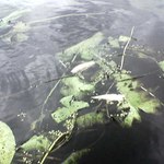 Сьогодні з товаришем вирішили відвідати частину водосховища що знаходиться поряд з с. Аршичин , планували пошукати там окуня чи щучку. Випливли від водної станції - база відпочинку "ЕЛІНГ" що в Млинові . Вже через 300м від станції побачили перших рибок дрібної бєлі в верх пузом, далі чим вище по течії тим інтенсивніше і через коожних 10м трупікі щук та окунів, щуки були в основному кілограмові але бачили і декілька за 4 кг , дуже багато дрібного окуня . Зі слів рибачка якого зустріли на воді то декілька днів тому місцеві руками збирали ще живу приморяну рибу -щук ,окуня та линків. Після побаченого рибилити бажання пропало.