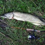 В воскресенье 11 августа побывал на водохранилище. Целился на окуня, потому брал с собой только лёгкий спиннинг с тестом до 10 г. Но погода внесла свои коррективы - с самого утра неслабый дождь, перешедший в противную затяжную мелкую морось... Короче, окунь брать отказывался, погода была типично щучья, что и подтвердилось. Вначале был срез силиконового рака (искал окуней, так что вместо поводка был флюр), позже удалось реализовать ещё одну поклёвку - домашнее взвешивание показало 2400. Получил дозу адреналина сполна - были и свечки, и попытка уйти под лодку...