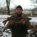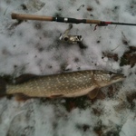Всім привіт! У суботу 22/11/2014 р. побував на р. Іква На воді штиль, води в річці мало, на плесах взагалі по коліна. В човні були я і швагро :). Можна сказати, що було зловлено рибу з вдачею, як новачку, за короткий час - приблизно 2,5 години. Випливши десь о 11-30… на руслі не ловили, обловлювали відразу ж ями. Ловив на віброхвіст бордового кольору Manns (3ка), джиг 7 грам, лєска 0,24 поводок флюр 0,3. Десь в пів години полоскання снасті на першому ж виході з ями відчуваю легкий ударчик, навіть не придавши значення, підсік і відчув на тій стороні щось не маленьке:))). Боротьба була не дуже сильна, але від ваги щуки фракціон працював хвилину-дві та спін звернувся весь в дугу. Підсак у нас був відсутній, коли я підвів рибу ближче до човна, швагро допоміг вкинути. Пізніше, на березі, нам дали старий безмен, показувало 2,5 кг. Думаю реально десь 2,7 :)))), похибка на те, що безмен старий. На ці й ж ямі у мене було ще одне клювання, на цей раз удар було навіть видно по кінчику спіна, але я напевне слабо підсік, і при виважуванні зішла риба, навіть не показавшись, залишивши поріз на сіліконі. Нажаль швагро нічого не виполоскав, він швидше мотав снасть. При проводках я робив великі паузи, можливо тому й рибалка вдалась. Нажаль треба було змотуватись і ще трохи поплававши ми вирушили на берег. Природа порадувала тихою, теплою погодою, хоча сонця не було, зате був улов. До цього був на Ікві зі спінінгом в липні та серпні, річка дарувала різний за якістю, але улов та й цього разу не підвела!