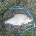 Водоем местного назначения. Не очень комфортно - все задействовано от шашлыка до моторок. Ну да и ладно ... Одним словом жара... Рыб не активный абсолютно. Плотва показывает себя еле .. еле... непонятные тычки ... Но крупная... Можно было поставить самую мягенькую вершину под кормушку 20 г... и все утончить... Но осознано продолжал ловить леща.... На крючку пару пинок и мотыль... Прикормка трапер фидер спешел... (корм зачетный стоит где то в два раза дороже за аналоги на рынке - но и на мой взгляд в два раза лучший)... Кормил ... кормил и поклевка .. корабль пошел в сторону.... Подтянул ... перенаправил ... а далее все просто.... Очень нравятся такие жизненные ситуации когда рыба с трудом влазит в подхват ... ))) Приятно... Красавчик... Особенно приятно что то что задумывалось - выполнено. А далее тароночные были только варианты... Всем нхнч.