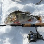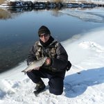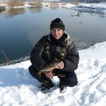 А це приятель Віталій, який уперше взимку (весною) ловить рибу спіном. Довго йшов до цього, нарешті збулось. Молодець. Вдалось колезі узяти двох полосатих, отримати один схід та ще мати 6 клювань