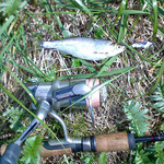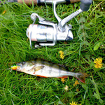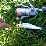 Долго не мог добиться поклёвок, обошёл кучу мест, и вот наконец ударчик. Первой в жизни рыбой, выловленной на воблер, как ни странно, оказалась уклейка.