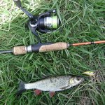 Всего на воблеры поймал пять голавликов (из них только один чуть крупнее), джигом немного окуней и две микро щучки - и ещё одну на микроколебалку Даига Аллегро 4г чёрного цвета.