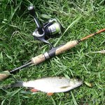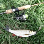 Большинство перспективных мест, как это обычно бывает в выходной, заняты местными "хрущатниками", которые переодически доставали из воды мелких голавликов на жука. На воблеры голавль откликается пока слабо (наверное, вода ещё не прогрелась нормально из-за прохладной погоды) и размеры оставляют желать лучшего. Экземпляры покрупнее пока молчат, может из-за низкой воды сместились в другие места.