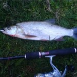 Поставив попер , зробив 2-3 протяжки, і чую всплєск в річці , відразу кидаю туда попер --- протяжки -- нічого. Скоренько ставлю кастмастер. Закидаю - один оберт катушки -- удар -- підсічка -- риба на гачку