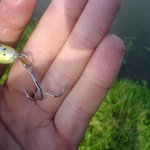 виявилось що моя взяла за задній трійник, і розігнула його......але при виважування вибилась з сил , упала в воду і стояла на місці.......тут уже пощастило мені - мій рекорд по щуці, та й по по вазі рибини взагалі