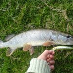 А от в обідню пору взагалі вийшло сонце, і риба активізувалась. У мене був вихід, але промах непоганої щуки. Поки я обловлював те місце племінник пройшов далі на метрів 100 і впіймав одну щучку на грам 600 і відразу іншу поменшу (з 400г.) на "копито 4" практично з одного місця.