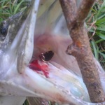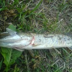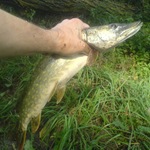 Знов ставлю коливалку - неспішна проводка - води чуть більше ніж по коліна - побачив як відкрилась і закрилась паща --БАХ - є. Щука, а у мене коливалка 2 грами - 3 см. і без повідка! Сильно не форсую, бо тонка ліска і здалося що гачок сидить в верхній щелепі, коливалка назовні. Досить легко вивів щуку на берег і тут зріз. Виявилось взяла по самі гланди, мабуть тому і несильно супротивлялась.