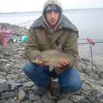 Темп беру в 10-15 хв, протягом 3 годин ні однієї покльовки, навіть окунця немає. І тут подьоргувавння квівера на дальньому фідері, підсічка і приємний супротив на іншому кінці шнура. Декілька хвилин виважування і рибка в підсаку, підлящик (в дома заважив 940 грм).
