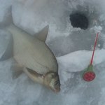 Доброго вечора. Рибалка 06.02.2017. Басів Кут. Рибалив з 9 до 13 год. Кльову небуло піймав пару окунців і йорша ну і ще пару маленьких судаків які випустив. вже мав іти додоми але вирішив пробурити три остані лунки і тут покльовка і через довгих 4-5 хв на льоду лящ 1.870кг. Мормишка "муравєй" мідний, мотиль, жилка 0,08, відчуття супер!!!