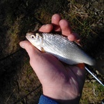 Перший раз рибачу на річці з такою сильною течією, враження не дуже. Настрій впав. Відчуваю що нічого не зловлю. Намагаюсь розгледіти клювання серед мимовільного згинання кінчика фідера – безрезультатно. Відійшов погуляти подивитись місцевість, чую батько щось тягне. Є!!! Перша нормальна риба! Плотва “на ладошку”, дуже “спиняста” в порівнянні з ставковою.