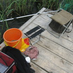 Також закидав спінінги з спутніками, дістав карася на пінопласт, один висмоктав пустий гачок, на кукурузу нічого не зловив. Потім вийняв ті спінінги щоб не заважали, бо активно клювало на фідер.