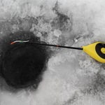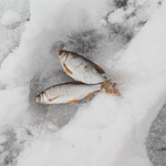 Був сьогодні на водоймі пару годин.Перший вихід на лід в цьому році.Погода нормальна: вітру майже не було,місцями падав лапатий сніг,лунки не мерзли.Рибаків було достатньо,хто з блешнями, хто з мормишкою.Я ловив мормишкою.Стартанув з шести лунок,закормив половину Флагман Gold Roach Cold Water,а другу половину закормив Флагман PRO Competition New TURBO Cold water Brown. На першій закормленій лунці практично зразу піймав підряд 3 плотви,а далі - тиша. Побіг по лунках - аж на останній закормленій взяв ще одну плотвичку. Розбурився в сторону берега і знову закормив обома сумішами. Поки рибка підходила на прикорм,ще раз провірив стартову базу. Результат - одна плотвичка і один окунь.