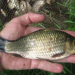 Десь о 9:00 один з хлопців розбудив, кажучи, що клювало - витягнув карасика до долоні. Згодом - ще одна покльовочка, і ще...