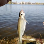 Поводок був короткий, дуже, ще з запасів для пікера, може сантиметрів з 30.. домашній атрактант якшо його можна так назвати, з кориці, мабуть привабив рибку, хоча я сподівався на щось з кислинкою чи гостре:) В цьому ж сетапі, в тому ж місці, при тих самих умовах я побачив ще з десяток ударів, але всі вони були не впевнені. І от, я нарешті дочекався клювання, впевненого, удар, удар, тряска, підсік.. Тягну і розумію що це щось маленьке, годівниця в 40 грам ледь ледь передає рух рибкі. Достаю, а там верховодка, жирна як для верховодкі, але верховодка