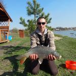 В 5:30 підйом, перезакидання снастей. В 6:00 роблю закорм точок ловлі, а далі очікування ранкового кльову. І ось на годиннику 7:25 і впевнена покльовочка, декілька хв виважування і амур на 1,7 кг в підсаку.