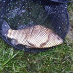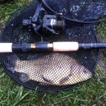 Сьогодні побував на Кірпічному. Звичайно з погодою трохи не повезло, але була одна покльовка і не в холосту. Ось такий карасик клюнув.