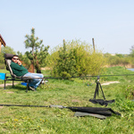 Оскільки зранку передавали +6, а потім мало тепліти аж до +18, тому виїжджати вдосвіта ми не бачили сенсу. На водойму приїхали доволі пізно, аж після сьомої. І все одно довелось чекати кльову ще години три. Було достатньо часу, щоб перебрати оснасточки, що лежали з зими, нав'язати нових повідків і потренуватись у жбурлянні куль прикормки з рогатки.
