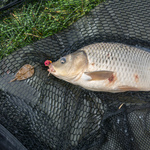 Відразу після закиду фідеру у мене на попапчик клюнуло щось дрібне, як я тягнув, то майже не відчував ваги і воно успішно зірвалось "по дорозі". Потім через дві години вже на пелетс, що розчиняється, теж клюнув дрібненький коропчик. Як тільки та наживка помістилась йому до рота!