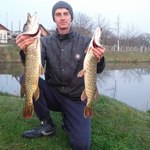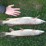 Сьогоднішній схід сонця зустрічав на озері Сарахманка. З самого початку клюнув маленький шнурок, який зразу ж поплив підростати. Потім майже годинне полоскання приманок не дало жодного результату. Як тільки сонце піднялося вище так зразу агресивна щуча покльовка, але промахнулася, залишивши за собою тільки хвилі на поверхні води. Стало цікавіше... Через декілька проводок - потужний удар і на іншому кінці шнура чую сильний опір щуки, яка ніяк не хотіла здаватися. Боротьба тривала близько 5 хвилин і новий рекорд встановлено! Через 10 метрів знову злісна атака приманки і відчуваю опір ще сильніше ніж чинила попередня щука, але насправді попалася дуже проворна щука, яку брат вже був змушений брати підсаком. На цьому й завершили рибалку.