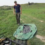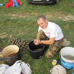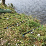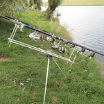 Мета поїздки – знову вполювати карпа. Дуже складний і непередбачуваний ставок. Знаючи наперед, що там буде багато людей у зв’язку з Днем Незалежності, я домовився з хлопцями з «БОМБИ», які рибачили там за день до нас, і ми мали змінити їх. І ось приїжджаємо – народу зовсім небагато, хлопці показують нам 4 Карпа , які зловлені більш як за 200 метрів від берега. Я і раніше знав що менш як за 100 метрів від берега там немає що робити, але щоб за 200 …. І причому в очереті. Тобто рибалка у них така трудова: гребеш на лодці завозиш снасті, потім чи покльовка чи просто перезакид – знову на весла і вперед. Очерет не давав навіть вивести ні карпа ні голу оснастку. Подивились ми на все це, почухали голови і поїхали шукати кращі місця. Розклались ми на старому місті на якому в мене був повний нуль (як потім вияснилось через недалеку відстань ловлі). Лодкою позавозили оснастки на відстань 150 метрів дальні , і 120 метрів ближні. Дещо детальніше про точки лову : 150 метрів – мілина 1 метр, тверде дно і початок зрізаного очерета який підступно ховається під водою. 120 метрів – вхід в рів (1.50 м. глибини, частково тверде дно) Через метр починається спад в рів глибиною 2-2.2 м.