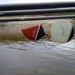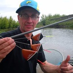 Погоняли с друзьями новые поплавки на реке Горынь . Места красивейшие , река извивается змеёй . Повороты , отвесные обрывы , заиленные отмели , обратки с завихрениями , русловые быстряки , перепады глубин - всё что нужно для увлеченного рыболова . Долго выбирали , кто где будет удить . Мне досталось участок с умеренным течением . Орудовал " штыком " на 13 метрах , глубина 3,3 метра . На этой дистанции " настукал " глубомером площадку , с небольшим углублением в середине проводки . Основная масса поклевок происходила именно после этой ямки .
