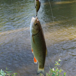 Вечером 22 мая выезжал на речку на пару часов проверить наличие голавля на перекате, впервые в этом сезоне. Рыбачил примерно с 18 до 20 часов. За это время было 6 поклёвок - два голавлика поймал, один не засёкся и было 3 схода. Довольно мутная вода и холодная весна - из-за этого травы на перекате ещё практически нет, голое дно, но рыбка уже тут. Уровень воды достаточно низкий, поэтому работали только самые мелководные воблеры - Jackall Chubby SSR, Maria MC-1 Wake, Lucky John Haira Tiny shallow, Silver Stream QW-36. Пробовал и микроколебалки, которые хорошо работали в этом месте в прошлые годы, но поклёвок на них в этот раз не было.