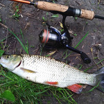 Сегодня вечером после работы был на Горыни, проверял ближние голавлиные точки вместе с seed. Ловил с 19 до 21 часов с перерывами из-за дождя. Погода не супер, но рыбка немного проклёвывается.