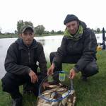 За сутки ловли нам с напарником удалось поймать 57 рыб, в основном карпики и караси, жаль что лишь два карася были около 200грамм, остальные в районе 50-60 грамм, у конкурентов с размером карасей было всё в порядке, в основном 150-220грамм, в итоге мы заняли 4-е место с уловом 4015грамм, первое место с огромным отрывом заняла команда "UL-trass" с весом улова 13435грамм разорвав конкурентов в пух и прах! Второе место у команды "Брати" с весом улова 10745грамм + "Биг Фиш" турнира 525грамм. 3-е место у команды "Истребители" и весом улова 4885грамм.