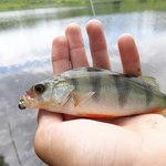 Прибувши на водойму о 8 ранку, складаю свій улюблений, робочий комплект, а саме: Graphiteleader Finezza Prototype GOFPS 762 UL-T + Daiwa Luvias 12 2506 + Berkley Nanofil 0.04 та йду на першу перспективну точку. Хочу додати, що водойма дуже сильно зросла травою, лише на протилежному березі є декілька чистих, відкритих місцевостей, решта, переважно вікна, які чистять для себе місцеві аборигени для того, щоб ловити на поплавчанку "золотих" линів та дебелих карасів. Ось одне з таких вікон я вирішив обловити. Прив'язую шарнірний монтаж вагою 2г, одягаю на гачок активний віброхвостик під назвою Nano Minnow в 10 кольорі та розпочинаю свою ловлю. Вже на першому закиданні заробляю першу клюваку окуня та реалізовую її. Зробивши порядку 20-ти закиданнь на цьому місті та зловивши ще 15 окунів приємного розміру для ультралайтової снасті, вирішує обійти всю водойму та опрацювати відкриті ділянки та ділянки, які менше зарослі травою! Не буду докладніше розписувати про свою ловлю, скажу лише те, що на кожному місті окунь просто розривав мої приманки вщент. Всю риболовлю вирішив присвятити ловлі на середній та дальній дистанціях, вагами 2-3г. Ловив тільки однією приманкою, про яку вказав вище, тільки час від часу змінював кольори та тренував різні проводки. За весь час ловлі спіймав близько 70-ти хвостів. Розмір рибки дуже привабливий, ловля вже такого розміру окуня на витончену снасть доставляє безліч кайфа та адреналіну, які потім переростають у приємні спогади.