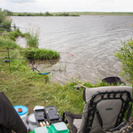 У них на руках цього виїзду був повний карт-бланш. Нам дозволили користуватись човном у світлу пору доби для підгодовування та завезення оснасток. Тож Стас з Віктором цим скористались сповна. Перший ловив з-під корчів (які він називав "штрупаки") десь на відстані в 130-140 метрів, а другий просто завозив далеко снасті прямо перед своїм сектором на чисту воду, але дуже точно стимулював апетити в риби якимись своїми хитрими заманухами. Коротше, клювання не заставили себе довго чекати.
