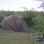 На вечір доволі сильно похолодало і зібралося на дощ ще сильніше, ніж збиралося вдень. У мене десь в районі першої ночі якийсь "тузік" клюнув на тяжкий фідер і заплутав ще один мій фідер. Дуже заплутав, і то за секунди часу, адже я відразу зреагував на писк сигналізатора і вибіг з спальника. Довелось просто обрізати одну з снастей. Тепер треба купувати знову якісну моноліску на методну ловлю медіум фідером... Проклявши того півтора кілограмового нічного лускатого гостя я звалив спати. Інколи прокидався, але не від сигналізатора, а від тяжкого дощу, що барабанив по нашому намету.