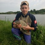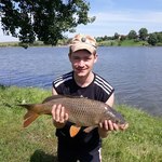 Вирішили по глоточку пивка випить щоб підшукать ключик до більших рибин. Тільки відкрили бутилку і в брата чітке клювання (дві кукурудзи і одна горошина) і вудка зразу злітає з підставки до води, но встигли її зразу зловить, завдячуючи великій траві на березі. Пару хвилинок виважування і карп на 2,2 кг у садку. Початок положено. через хвилин 10 на те саме знов карп на 1,7 кг в садку. В 06:20 і в мене клювання на поп ап 10 шовковиця і карп на 2,7 на березі. Клювання в брата відбувались через хвилин 20-30, а в мене щось затихло. Після сьомої години ранку вирішив поставити поп ап креветки і результат порадував через 10 хвилин - карп голий на 1,7 кг на березі. Закинув я ще на поплавок бід берегом. Клював спочатку знову дрібненький карп. Брат тож на поплавок поставив і зловив карпика десь на 1,5 кг, а в мене тишина.
