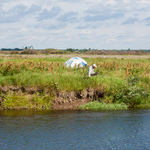 Прийшов сусід перевірити закидушки з ночі: росяників ніде не було, а живці на місця. Він повиймав всі снасті й пішов додому. На його місце став інших смішних дідок. Він ловив на хробаки, які видерав з дерну прямо на березі. Клювали у нього лише бички (їх тут називають кобликами). І то такого розміру, що іноді хробак був більшим за рибку. Потім на протилежному пологому березі засів якийсь селянин поміж лепехи з вудочкою, мабуть сподівався на якогось карася. Але його вистачило буквально на години півтори і він забрався геть. Також була ще якась компанія з ночі на Жигулях, що стала на найбільших ямах, праворуч мене метрів двісті. Їх теж не стало до дев'ятої ранку. Ну й останній колега по цеху пробував щастя ліворуч від мене через зарічок. Порибалив він годинку й пропав. Отже, я пережив всіх конкурентів цього дня на річці Стир.