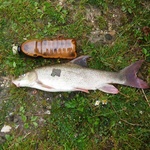Неділя ранок десь 5.30 покльовкі були з годину потім як обрізало. Впіймано було одного головля 800г.два по500 і один 300. Цей раз рибалка майже вдалася якби не дощ. А взагалом задоволений перший трофей ще й на арену. Да працювало чорне колебло вагою 1.7 та 2г.