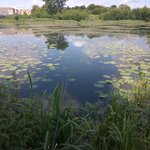 Не встигаю на маршрутку що йде напряму, сідаю на ту що через автовокзал їде - хай йому грець скільки він обвозив що по місту що по Городищу поки доїхав до колонії.......вже чортики брали. Приїхав. 11:30 =( Зустріли білі стіни колонії......."а над зоной воронье, делит то что не свое, жизнь мою.....", ладно, то таке.......5-7 хв. ходу і я на ставу, збоку церкви що на горбочку. Рибаків 3-4. Став гарний, проте сильно порозший, кувшинками, "сосонкою". Місць доступних для рибалки до десяти, там де прочищено. В інших місцях від берега на 8-10 м усе під і над водою порозше.