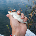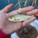 Мені так випало, що на місці, де ми стояли з ночівлею, був кимось побудований маленький причал для човника. Тому я фідером ловив прямо з нього. Покльовки не забарилися і я почав тягати тутешню плотвичку. За ті дві години, що я мав у своєму розпорядженні перед виїздом велосипедами у мандрівку по Поліссі я встиг насмикати два десятки риб.