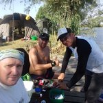 ….Поки нас не запросили на вечерю дружня команда "Funfishing", а також на дегустацію їхнього фірмового березового соку. Тут зібралась знатна компанія, вечеря затягнулась, але ми дякуємо Андрію та Міші а також третьому учаснику Христині, і всій компанії, ми тренуватись….