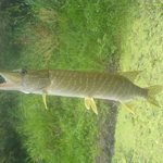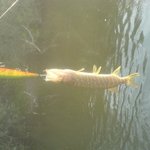 посеред річки на ямі на інквізитора-110 у нього сідає гарна щука (рівно 2 кг)