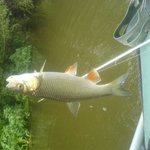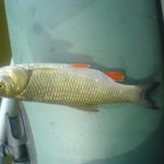 Потім довгенько полював на двох жерехів,(тонучі міношки, кукри, кастмастер, пількер та ін .) але безрезультатно. Спустився метрів на 50 і на найменшого понтоновського "Гага-гуна" зацепив голавчика , який шумно супротивлявся, заскочив в водорості і зійшов. На шум миттєво прибіг жерех біля кг. --дуже крепка і швидка риба -- за секунду приплив, глянув на голавчика і за секунду назад проти течів дременув.