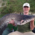 Последний месяц лета посвятил выездам с квоком. К сожалению, водоёмов с сомом более-менее приличных размеров у нас не густо, да и в тех подводники сильно проредили поголовье, так что поклёвок маловато. В этом году поздно открывал сезон, 23 июля, на водоём попали уже после обеда. Повезло попасть на активность рыбы - были явные подъёмы к наживке, а уже через часа полтора была поклёвка, но я поспешил и не дал нормально заглотать, рыба не засеклась. Ещё через час, около 18 часов, ещё одна долгожданная поклёвка, на этот раз подсёк вовремя, сом засёкся хорошо и после нескольких минут вываживания оказался в подсаке. Взвешивание показало 8,6 кг.