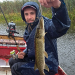 На однiй iз ямок, на викидi на рудру, получаю борзу клюваку, пiдсiчка i рибка йде з шаленою швидкiстю на мене, я не встигав вимотувати, вийшовши на мiляк, що був лiворуч вiд мене почала боротись. Декiлька хвилин боротьби, пара свiчок i щука в пiдсаку, заважила розбiйниця 2 кг.