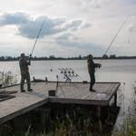На ставку крім них було ще максимум три сектори зайнятих. І в тих людей теж кльову не було. Головна причина — це інтенсивне годування риби адміністрацією водойми. Мало не щодня випливає човник з охороною і прямо з лопати у воду висипається перед кожним сектором на відстані десь 80 метрів звичайна сира кукурудза. Відповідно риба дуже пасивна. Кльов — відсутіній.