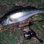 В течение часа было 5 поклевок - судачок 1,1 кг, один мелкий, еще один за кило отвалился уже возле самого подсака, одна поклёвка холостая, а на следующей при подсечке лопнул узел между шнуром и флюрокарбоном. Видимо, узел был уже старый и я его вовремя не перевязал... В результате рыба ушла с приманкой. Пока перевязался по-новому - рыба с точки уже отошла и до темноты больше поклёвок не было.