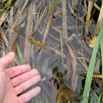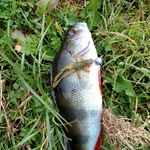 Тихенько пiдкралися до водного полотна, присiвши поставили 10 сантиметровi стальки, дiаметром 0.12 мм i в бiй! 15 хвилин, перебiр приманок та проводок не дали результату, тому друг мiняэ оснастку i починаэ iнтенсивно висмикувати гарних окуньцiв на селiконову муху, яка стала другим вiдкриттям нашого рибальського уiккенду. На однiй з проводок, на черговому пiдривi 2" кайтековського iзi шайнера получаю чiтку клюваку, рибка не сильно впираэться, i за мить шнурок на березi. Через декiлька хвилин я получаю ще одну борзу клюваку на тiй же дальнiй бровцi, рибку не вдалося засiкти, але вона лишила менi на згадку слiд своiiх зубiв на моэму iзiку.